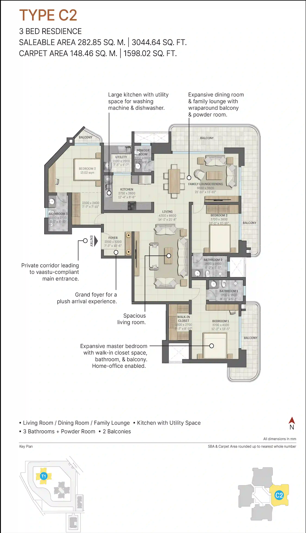 | 3 BHK | ~2,870 – ~3,100 sq ft |