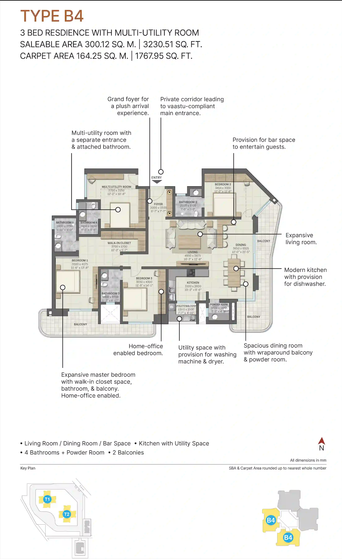 | 4 BHK | ~3,045 – ~3,340 sq ft |