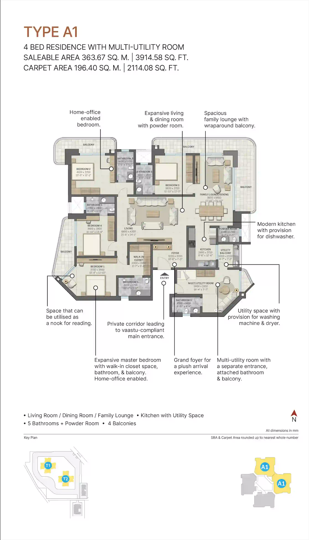 | 5 BHK | ~3,690 – ~3,853 sq ft |
